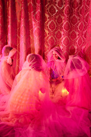 Each experience is thoughtfully designed to feel indulgent, grounding, and energetically meaningful. Pamela brings all ceremonial elements to create the atmosphere, including soft pink tulle capes for each guest, plush pink pillows and sheepskin rugs, ambient mood lighting with LED candles, glowing neon accents, and crystal singing bowls. The result is an elevated setting that invites presence, beauty, and connection.